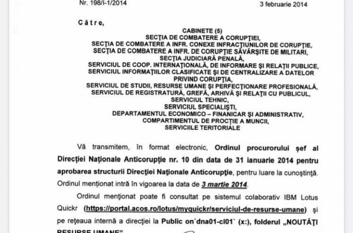 “Serviciul de Combatere a Corupţiei în Justiţie” din DNA a fost înfiinţat de fostul procuror şef al DNA, Laura Codruţa Kovesi care a reorganizat toată DNA, prin Ordinul numărul 10, în 31 Ianuarie 2014, înfiinţând în mod special “Serviciul de Combatere a Corupţiei în Justiţie”, la câteva luni după ce aceasta a fost numită în urma unui troc politic în fruntea DNA, în mai 2013.